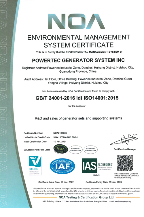 Environmental Management System Certificate/EMS Certificate